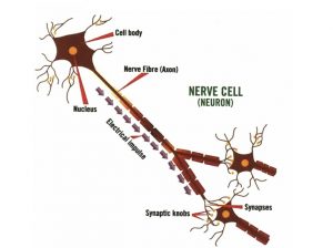 BRAIN: Messages are passed from cell to cell (neurons) in the brain by chemicals called neurotransmitters which fit by shape into their own receptor sites on specific cells.